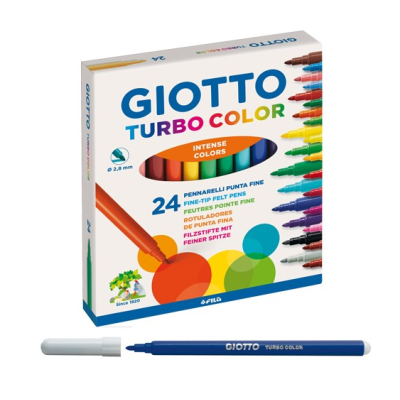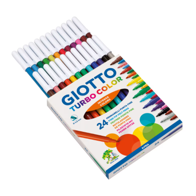 Scopri i pennarelli Giotto Turbo Color: la soluzione perfetta per i tuoi momenti creativi! Con 24 colori brillanti e intensi, ogni tratto diventa un capolavoro. Creati con inchiostri sicuri a base acqua, si lavano facilmente dalla pelle con acqua e sapone. La punta da 2,8 mm, super robusta e bloccata, garantisce precisione e durata. Grazie al design con cappuccio ventilato e tappo di sicurezza, sono sicuri al 100%. E con la tecnologia Long Cap-Off, continuano a colorare anche dopo giorni! Confez