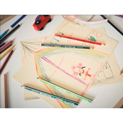 Disponibile in 24 colori brillanti in astucci da 12 a 24 matite e 19 colori sfusi