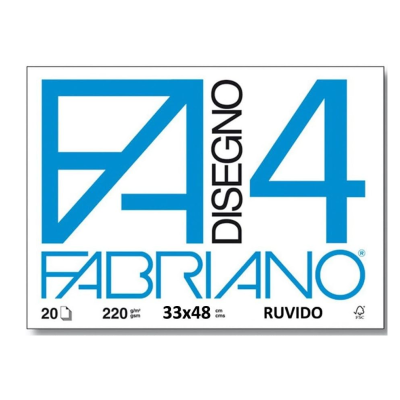 Blocco da 20 fogli, misura 33x48, ruvido, 220gr/mq. L'alto grado di collatura e l'ottima resistenza alle gomme di qualsiasi durezza sono le prerogative principali di questa carta che e' particolarmente indicata per gli studenti degli Istituti Tecnici e per l'uso professionale di grafici, architetti e geometri. E' prodotta con il 100% di cellulosa E.F.C.(Elemental Chlorine Free), certificata F.S.C. proveniente da foreste gestite secondo standard ambientali, sociali ed economici. Il Fabriano 4 e' punzonato a secco e riproduce il marchio, il numero 4 ed il logotipo Fabriano
