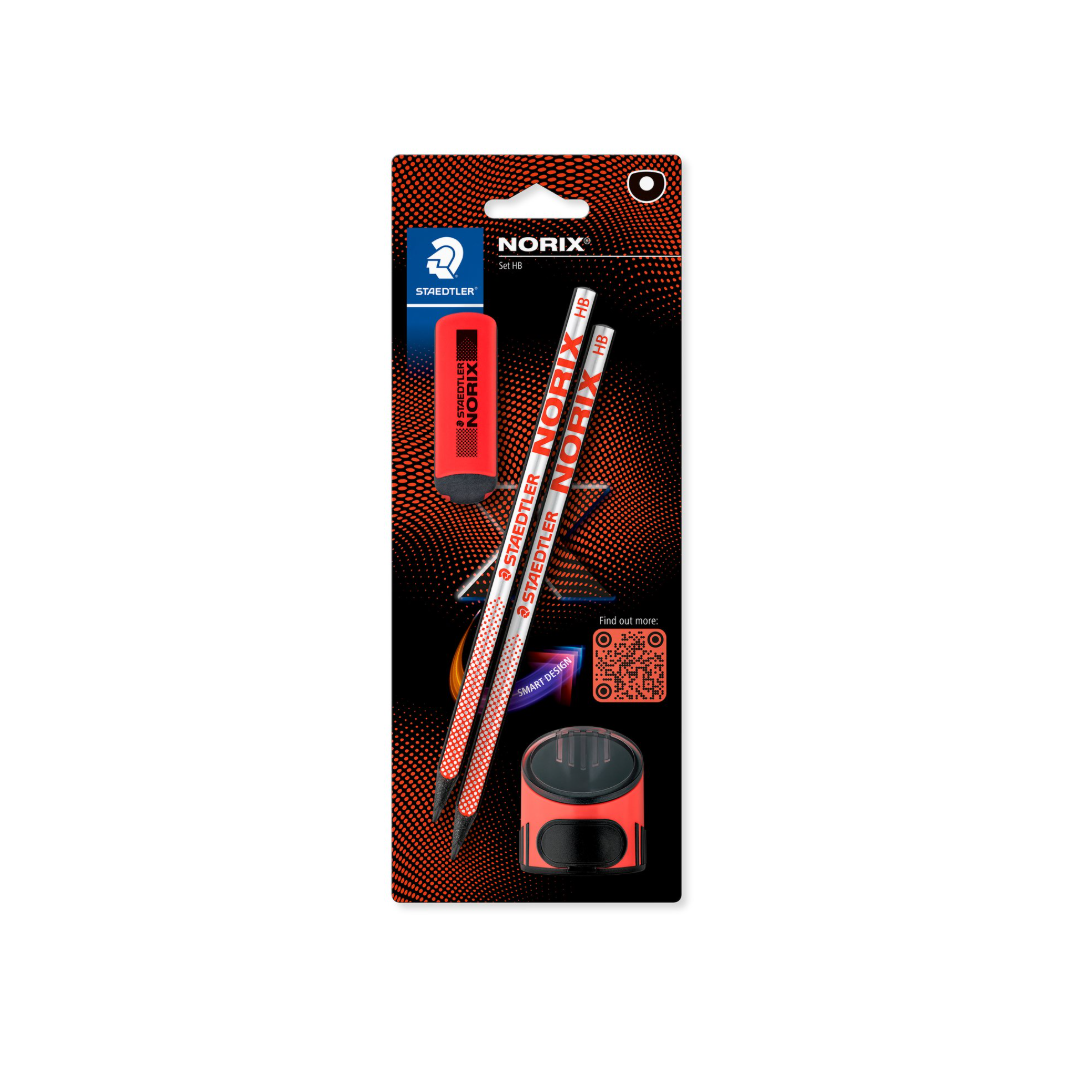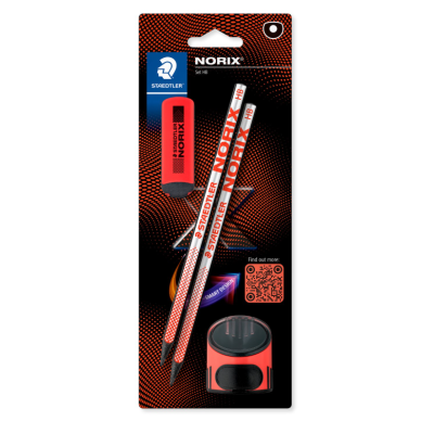 Staedtler - NORIX Blister giallo con 2 matite di grafite HB, 1 gomma e 1 temperino monoforo Rosso (181 SBK2-2)
