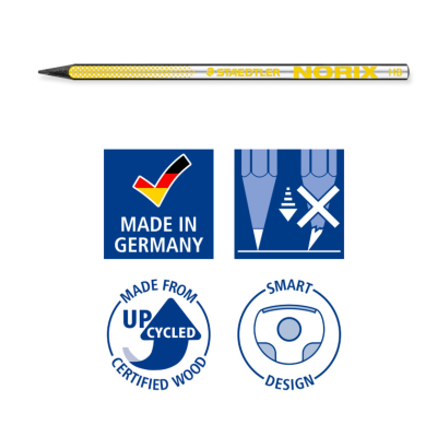 NORIX ® 181 Matita di grafite Blister, corallo con 2 matite di grafite HB, 1 gomma e 1 temperino monoforo Informazioni sul prodotto NORIX - l'assortimento 10+ DESIGN INTELLIGENTE - Matita in grafite in una nuova forma unica per una scrittura rilassata X-treme - Matita nera dal design accattivante e innovativo Immergiti nel nostro mondo creativo NORIX con la nostra matita in grafite extra-elegante Disponibile in piombo HB Superficie morbida antiscivolo ed elevata resistenza alla rottura, ideale per scrivere, disegnare e fare schizzi. Materie prime utilizzate responsabilmente - Prodotto con trucioli di legno riciclati Contenuto di legno proveniente da foreste certificate PEFC, gestite in modo sostenibile. Prodotto in Germania Disponibile in 3 colori assortiti