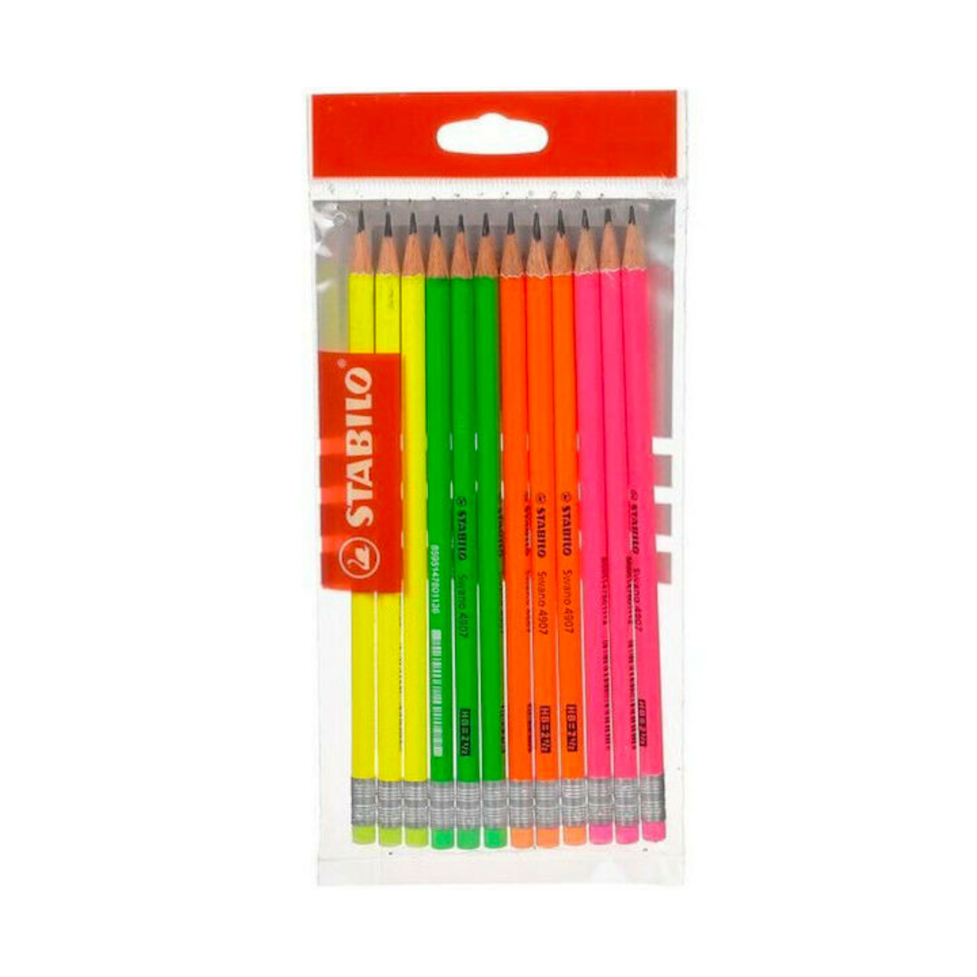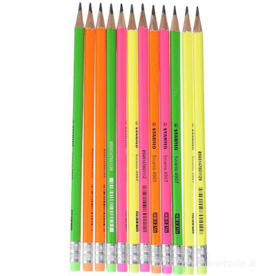 La matita in grafite STABILO swano fluo HB e gommino, in eco-pack da 12 matite.