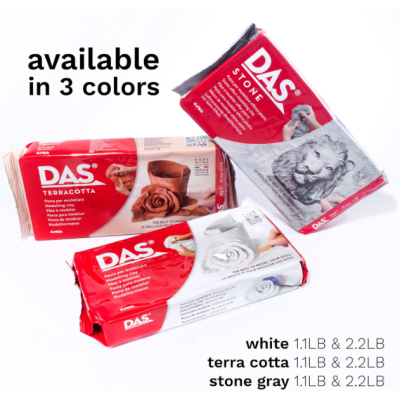 È arrivato DAS Stone: l’intramontabile pasta per modellare autoindurente all’aria con un nuovo colore per creazioni effetto pietra. Facile da modellare, perfetta per la creazione di sculture, statue e bassorilievi, offre innumerevoli possibilità di lavorazione garantendo un risultato materico naturale, ruvido, poroso e senza crepe. L’alleato ideale di tutti gli amanti del modellaggio, artisti e hobbisti.