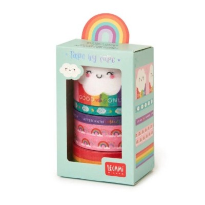 Tape By Tape Cute Rainbow di Legami è il set di 5 coloratissimi scotch di carta da 5 metri per incollare, decorare e personalizzare tutti i tuoi accessori.