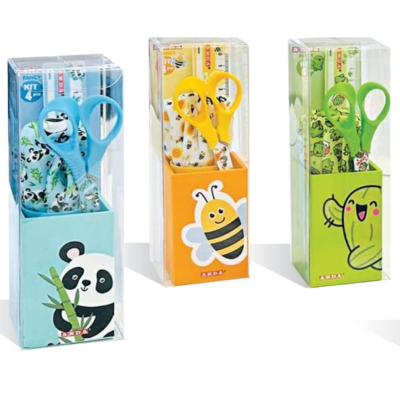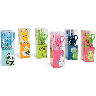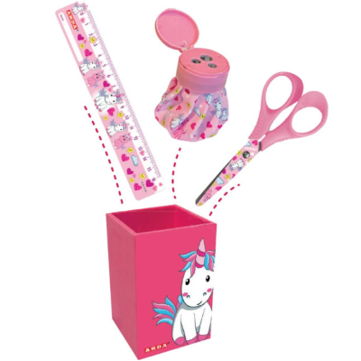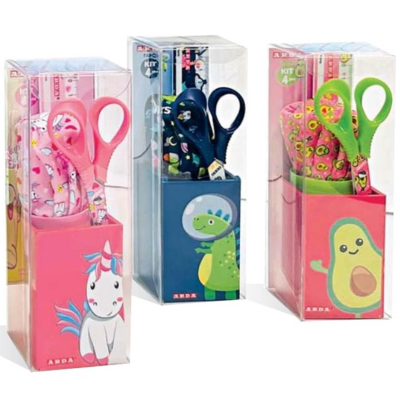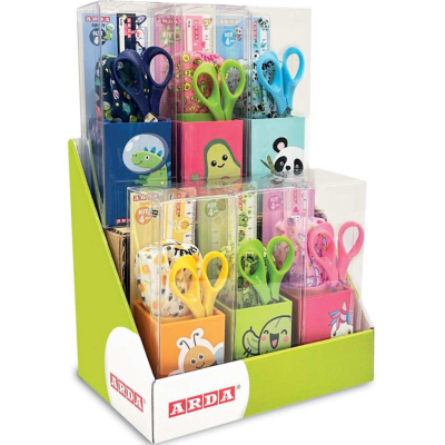 Arda - Kit Fancy Decori assortiti Portapenne, temperamatite, Forbici e Righello (319FANSC)