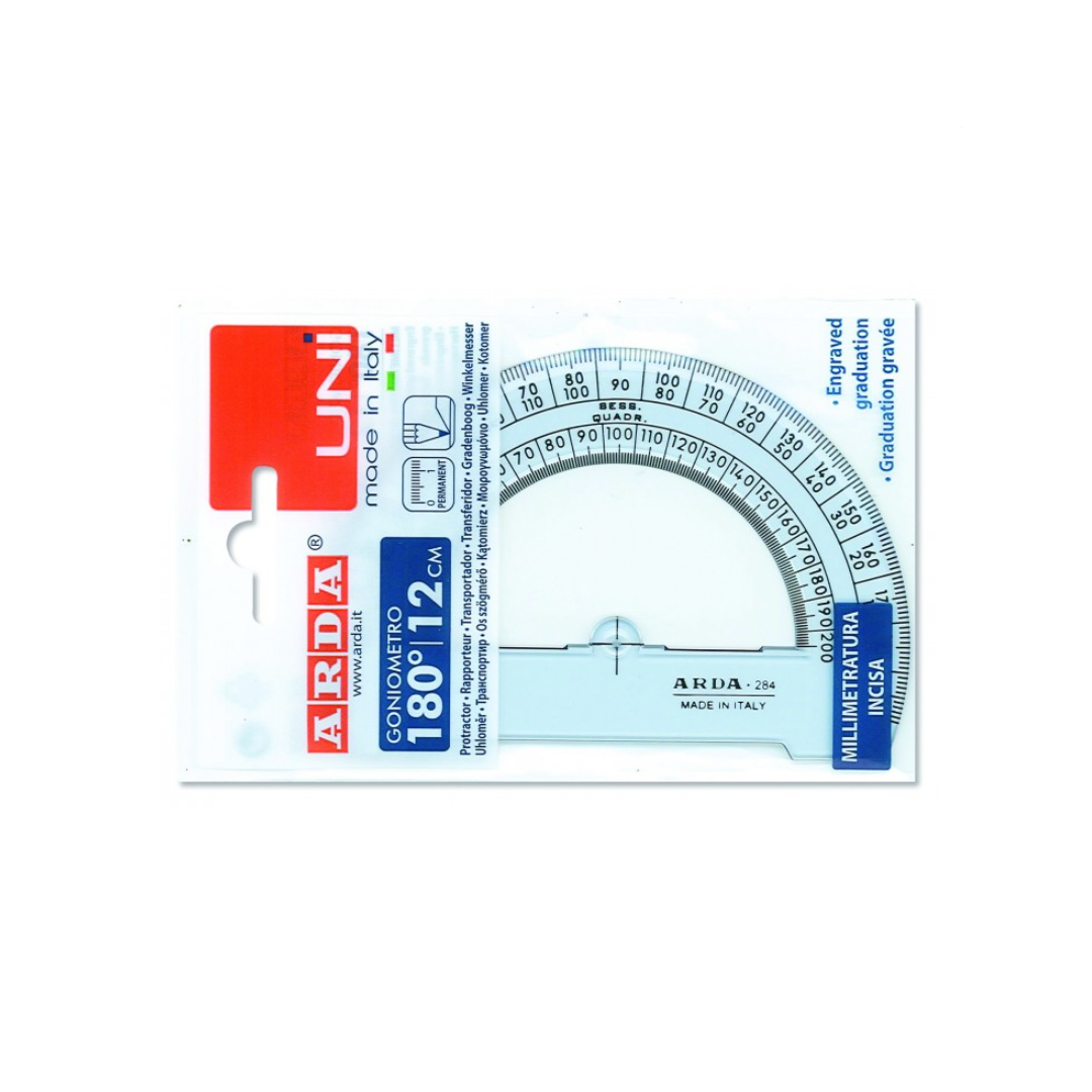 La serie Arda Uni è realizzata in polistirolo di prima scelta di elevato grado di trasparenza e durezza superficiale che garantisce resistenza e durata nel tempo. Gli articoli sono in colore ottico adatto a tutti gli usi. La graduazione è incisa a caldo con caratteri facilmente leggibili e molto precisi. La maggior parte degli articoli è munita di bordo tira-china sui lati non graduati. Gli articoli sono confezionati in busta appendibile che può essere riutilizzata per proteggere il prodotto da graffi e rotture.