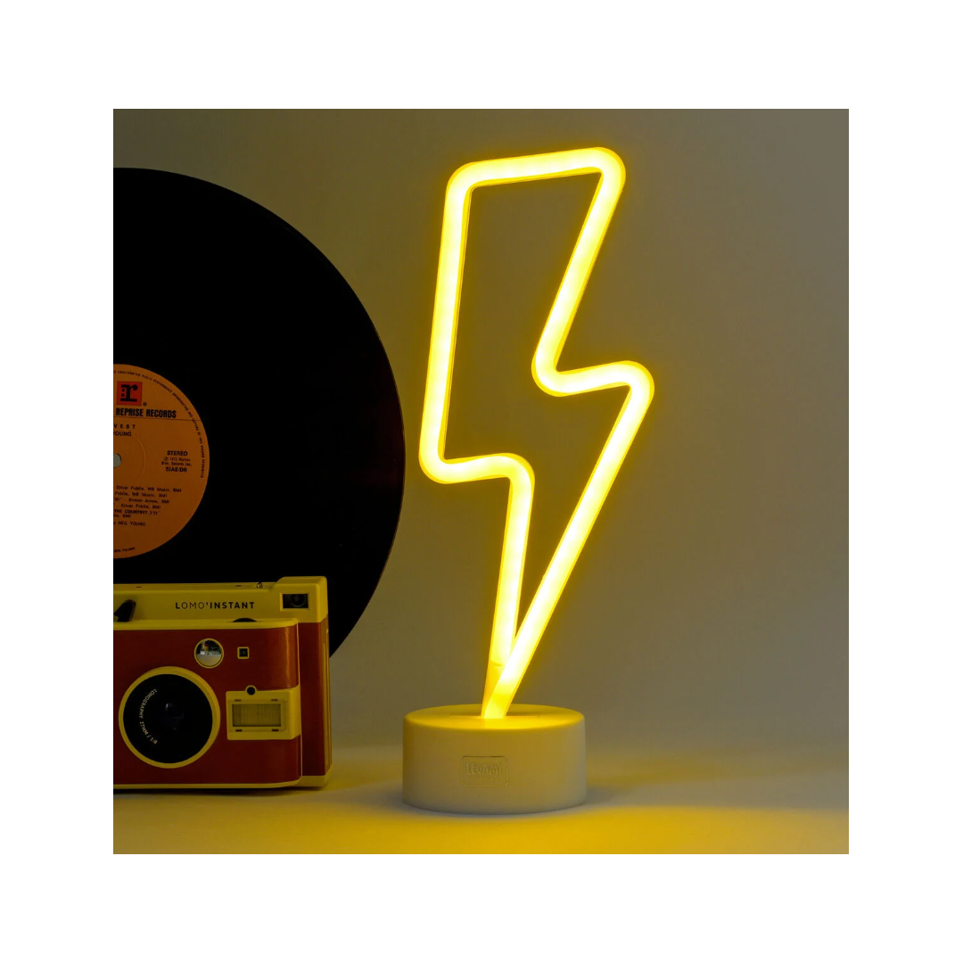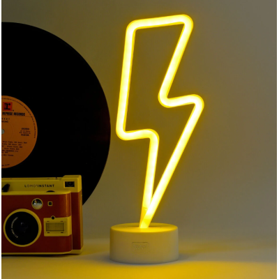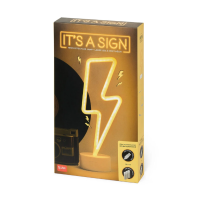 Al tuo segnale, che si scateni... "It's a Sign", la Lampada Decorativa da Tavolo a Led Effetto Neon di Legami a forma di Lampo. Con doppia alimentazione, batterie o cavo USB, per non rimanere mai a corto di... segnali luminosi!
