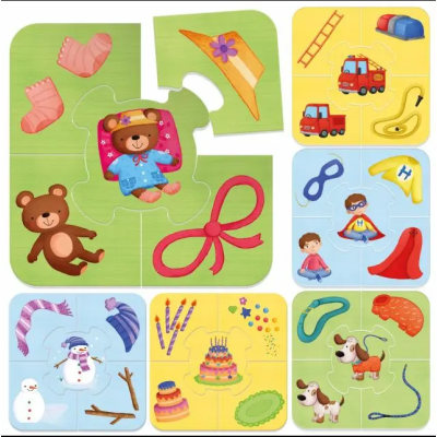 OTTIMI CONTENUTI per giocare in più modi e divertirsi imparando: 6 puzzle composti da 5 pezzi.