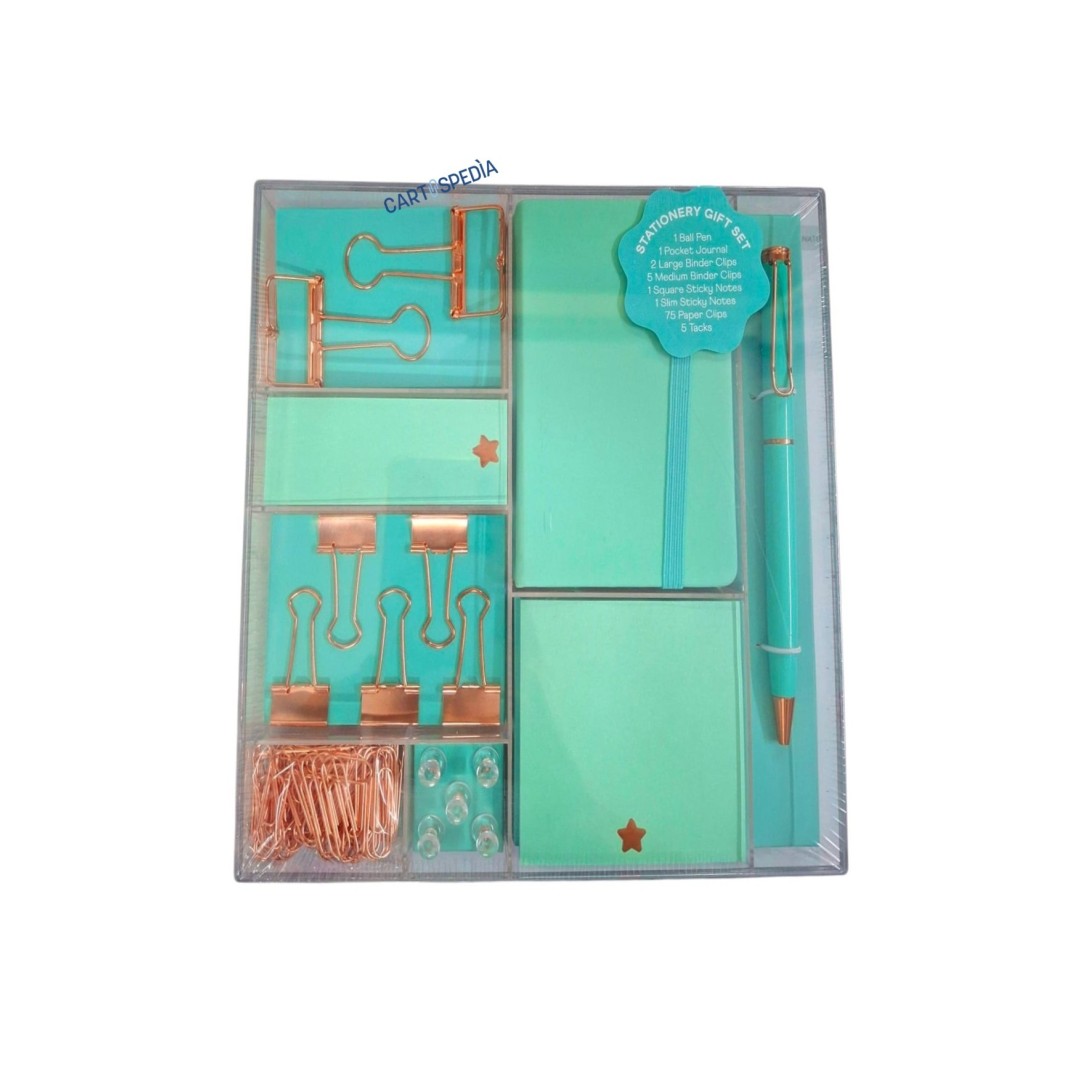 Un set raffinato perfetto per la scrivania di casa, dell’ufficio o per fare un regalo curato e funzionale. Ogni elemento è abbinato per colore e pensato per essere bello, utile e di qualità. Contiene :