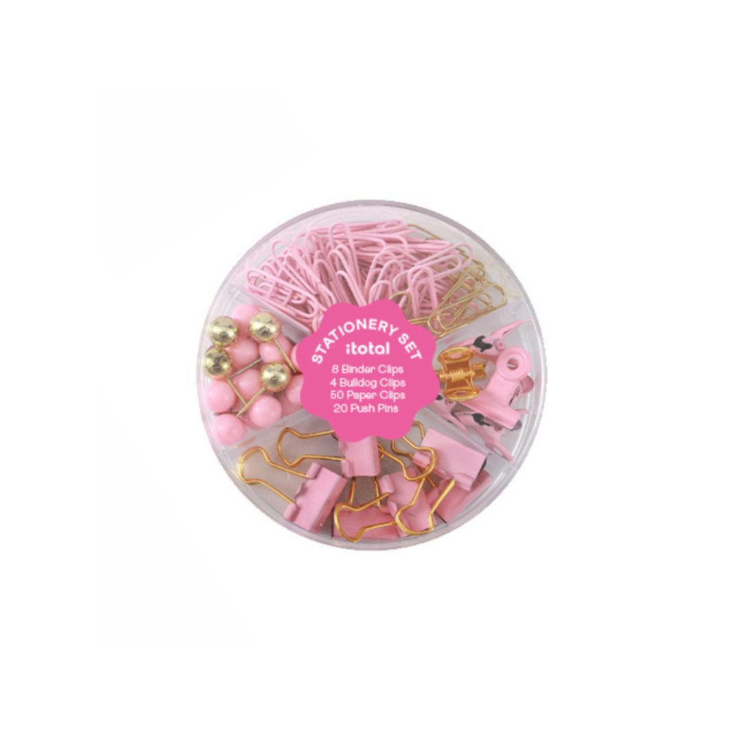 i-Total - Set da scrivania rotondo con graffette e puntine Rosa (XL3002)