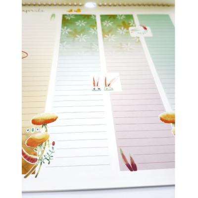 Riconoscerete il tema 2026, ‘vivere il tempo’, in ogni dettaglio che illustra le quattro colonne dell’indispensabile Calendario Famiglia Goccioline. Fatevi ispirare da queste immagini! Qui troveranno spazio tutti i vostri appuntamenti, che potrete confrontare e coordinare a colpo d’occhio. Le pagine sono colorate con sfumature di acquerello, e punteggiate di immagini e rilievi che accompagneranno le vostre annotazioni.