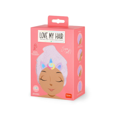 Addio capelli crespi! Bye bye ore di asciugacapelli! Au revoir punte spezzate! A prendersi cura dei capelli appena lavati arriva l’Asciugamano per Capelli a Turbante - Love My Hair - Unicorn di Legami. Questo morbido Unicorn in microfibra super assorbente avvolge la chioma in 4 semplici mosse e si fissa con un semplice bottone.