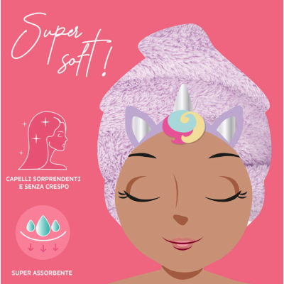 Vuoi sentirti una diva a ogni shampoo? Sfodera l'Asciugamano Turbante per Capelli a tema Unicorno! In morbida microfibra super assorbente, aiuta a prevenire capelli crespi e spezzati. Abbina il Turbante Asciugacapelli ad altri prodotti Beauty a tema Unicorno.
