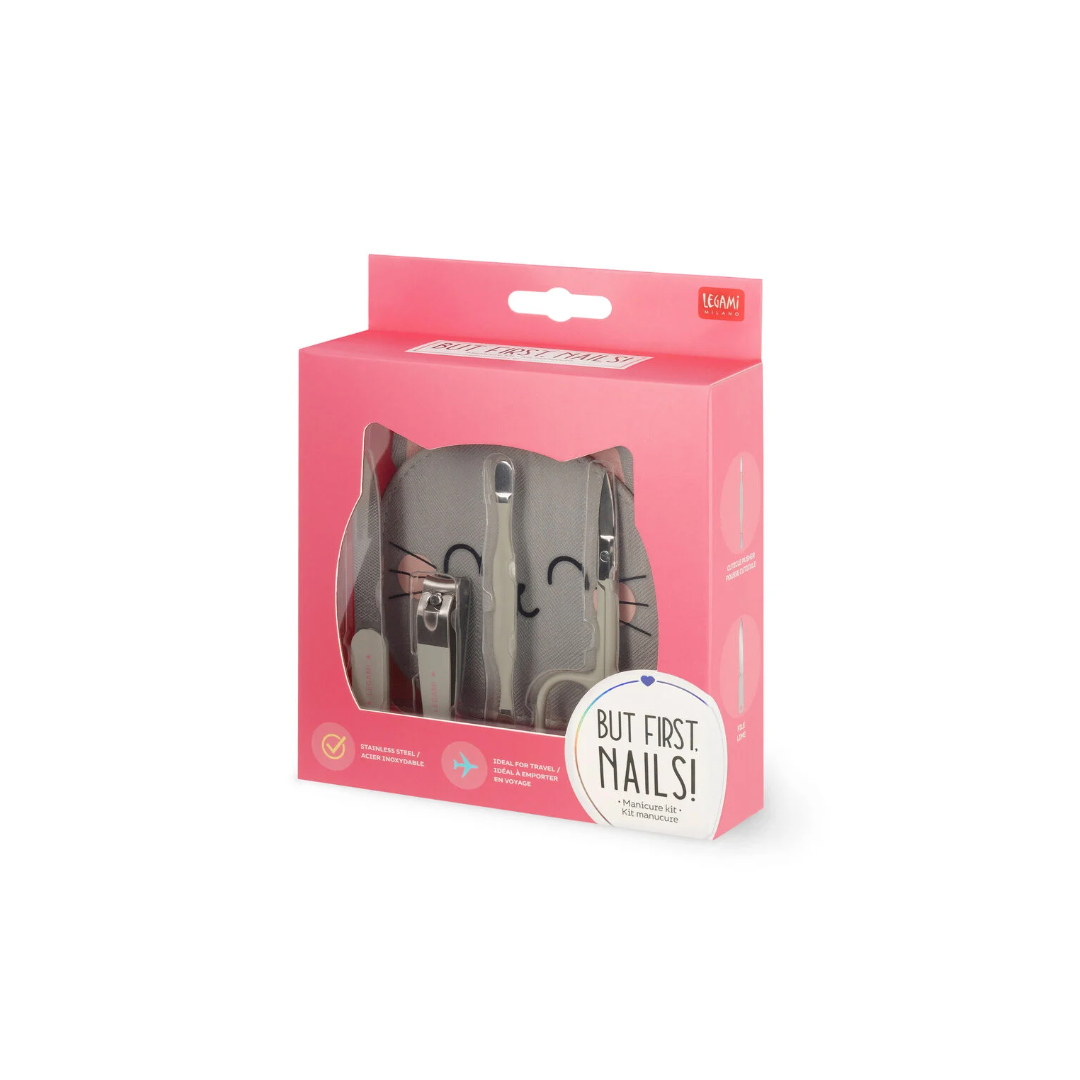 Qua la mano! Anzi, le mani. Non avrai paura a mostrarle con il Kit Manicure - But First, Nails! in versione Kitty di Legami, che contiene il set completo per avere unghie sempre perfette: forbicine, tagliaunghie, lima, spingicuticole. E tutto in formato da viaggio per non abbandonare mai le tue borse e valigie.