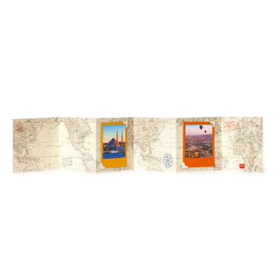 Un posto per tutti i vostri ricordi di viaggio: oltre al tuo telefono, c'è anche la Scatola dei Ricordi a tema Viaggio di Legami che contiene un Album Fotografico piegato a fisarmonica, pronto ad accogliere le vostro foto più belle. Idea Regalo per Travel Addicted.
