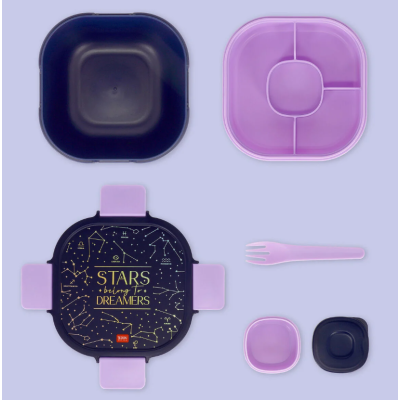 Eccolo, il vero e proprio re della schiscetta! È lui, il Contenitore Porta Pranzo a tema Zodiaco di Legami. Con vassoi impilabili, removibili e utilizzabili anche separatamente e 3 posate incluse. Capacità di 1,7 litri. Adatto a lavastoviglie e microonde. Portavivande tipo bento box.