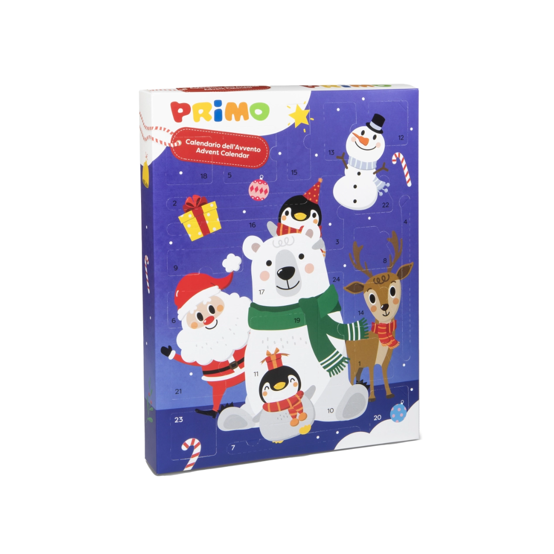 Il Calendario dell’Avvento Primo è il regalo perfetto per bambini creativi! Contiene 24 sorprese tra materiali per colorare, modellare e creare, ideali per sviluppare fantasia e manualità durante l’attesa del Natale. Grazie al QR code sul retro, è possibile accedere a una raccolta digitale di schede creative da stampare e utilizzare insieme ai prodotti contenuti nelle finestrelle.