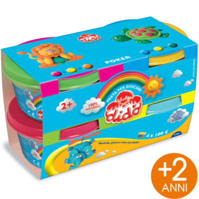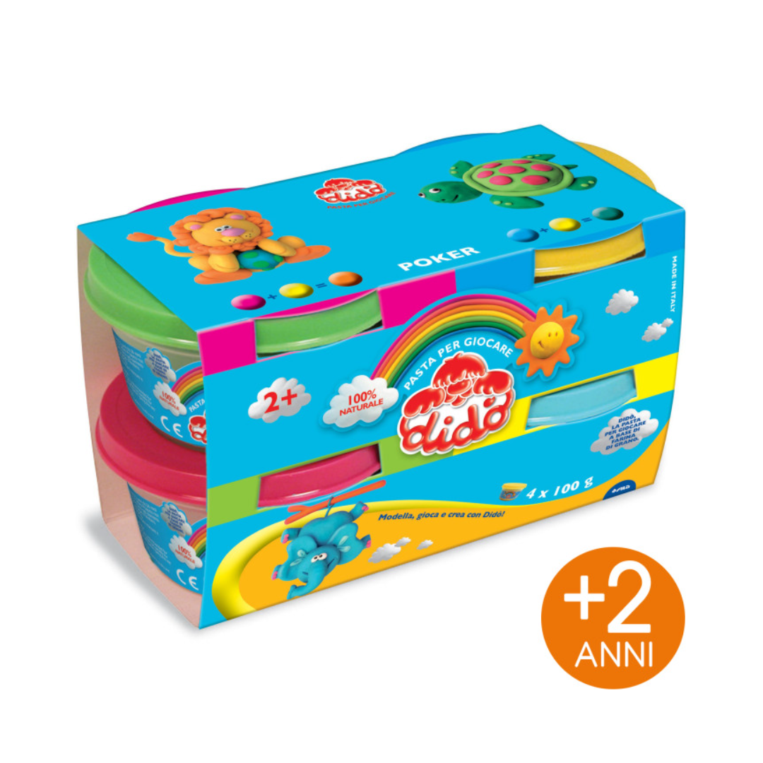 Con Didò i più piccoli sviluppano la manualità, imparano i primi concetti di tridimensionalità e si divertono a dare vita a forme e personaggi di fantasia. Realizzata con ingredienti naturali, Didò fa divertire i bambini ed è amata dalle mamme. Disponibile in una confezione da 4 barattoli: verde, giallo, magenta e azzurro, hai le carte in regola per dare forma alle idee più brillanti.