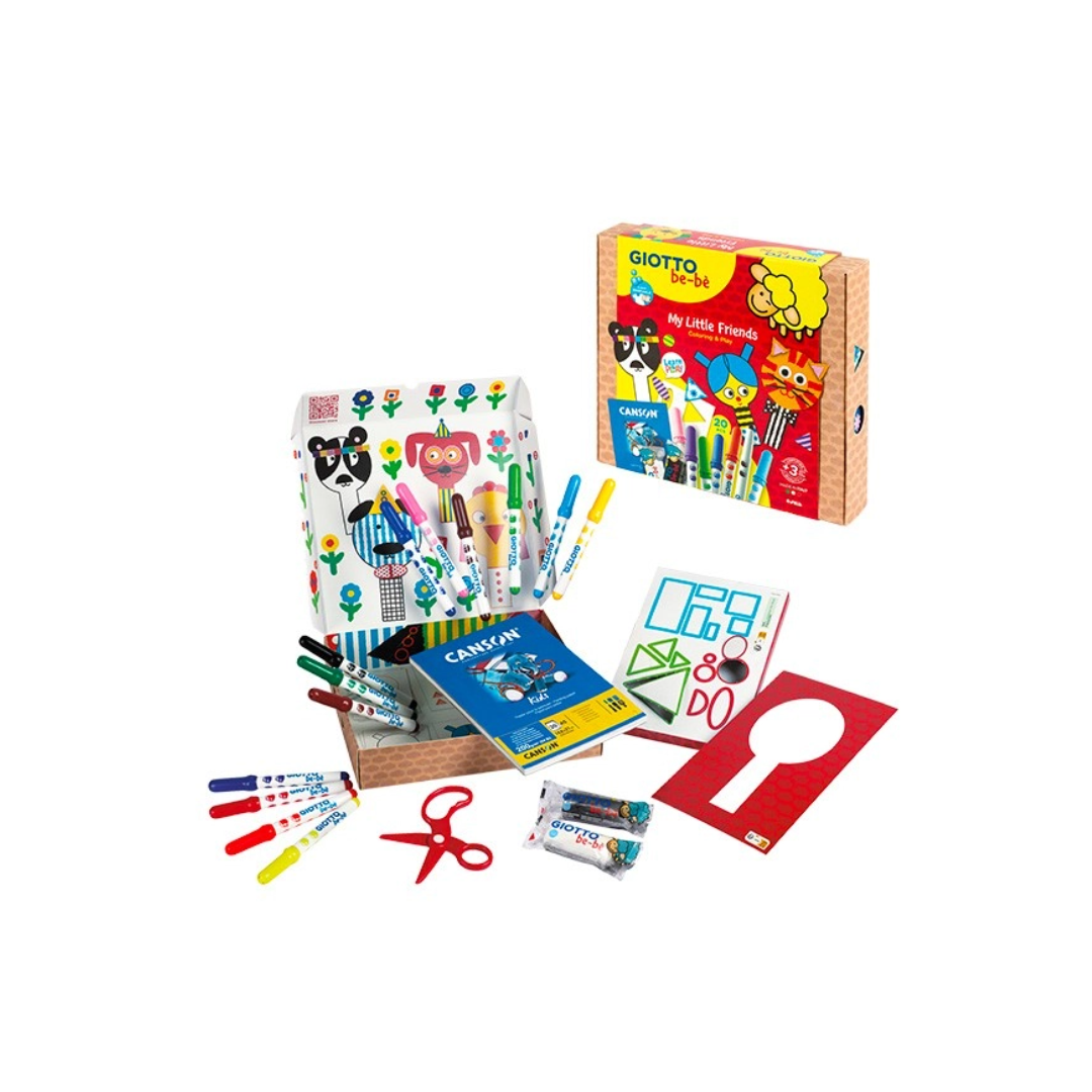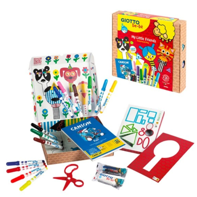 Con GIOTTO be-bè My Little Friends crea tantissimi nuovi amici buffi e coloratissimi dandogli la forma che preferisci. Con i piccoli amici da creare, colorare e animare i bambini esprimono la propria immaginazione, stimolando la creatività e il senso del gioco. Nella confezione trovi 14 colori dei pennarelli super lavabili GIOTTO be-bè – facili da usare e con la caratteristica faccina sorridente capace di trasformare il colore in un vero e proprio compagno di giochi. La sperimentazione continua con le forbicine, perfette per tagliare la carta ma senza bordi taglienti. Immancabile un blocco di carta Canson Kids con 20 fogli ad alto spessore 200g/m² per dare forma ai personaggi con cui giocare. Oltre alle maschere geometriche anche 100 gr di pasta per giocare per aggiungere ai personaggi gli occhi, il naso e altri dettagli. All’interno della scatola trovi, inoltre, un QR Code con tante idee creative realizzate in esclusiva per noi dall’illustratrice Vittoria Facchini.