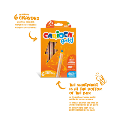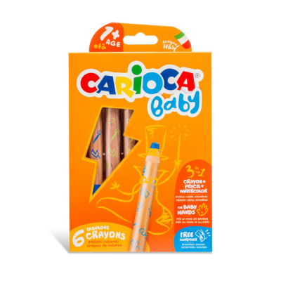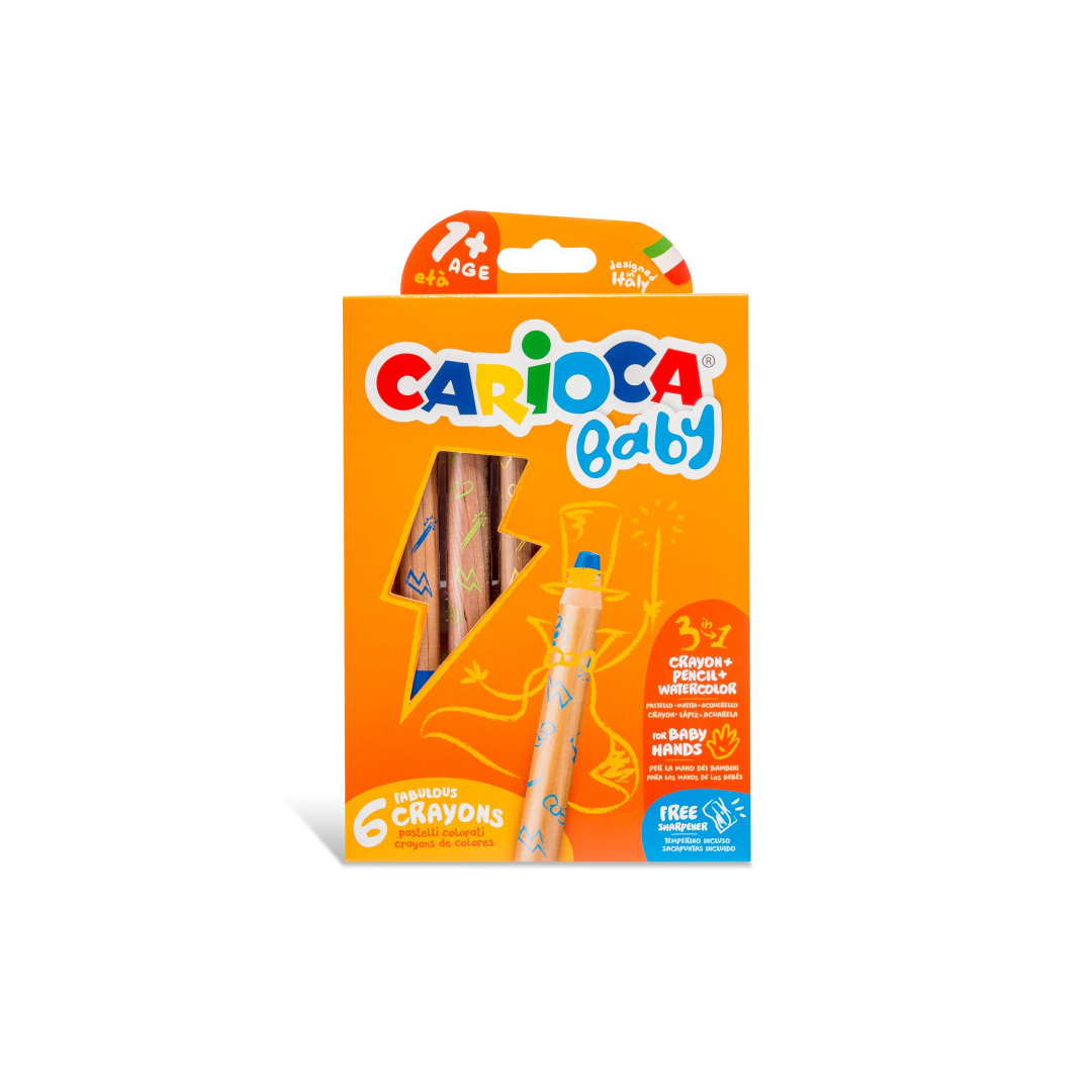 • Scatola 6 pastelloni BABY 1+ 3in1, matita, cera e acquerello in un unico pastello