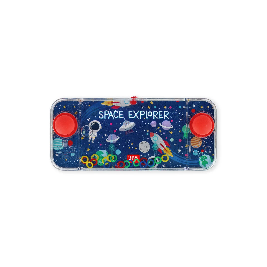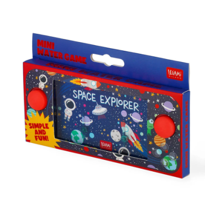 Sembra una console ma è senza batteria; funziona ad acqua ma è tascabile. Hai indovinato cos'è? È il Mini Gioco ad Acqua a tema Space di Legami! Schiaccia i pulsanti per muovere gli anelli e fai centro sui paletti. Non sei ancora riuscito a infilarli tutti? Non preoccuparti: il gioco ad acqua è così mini che potrai portarlo sempre con te e allenarti fino a diventare un campione.