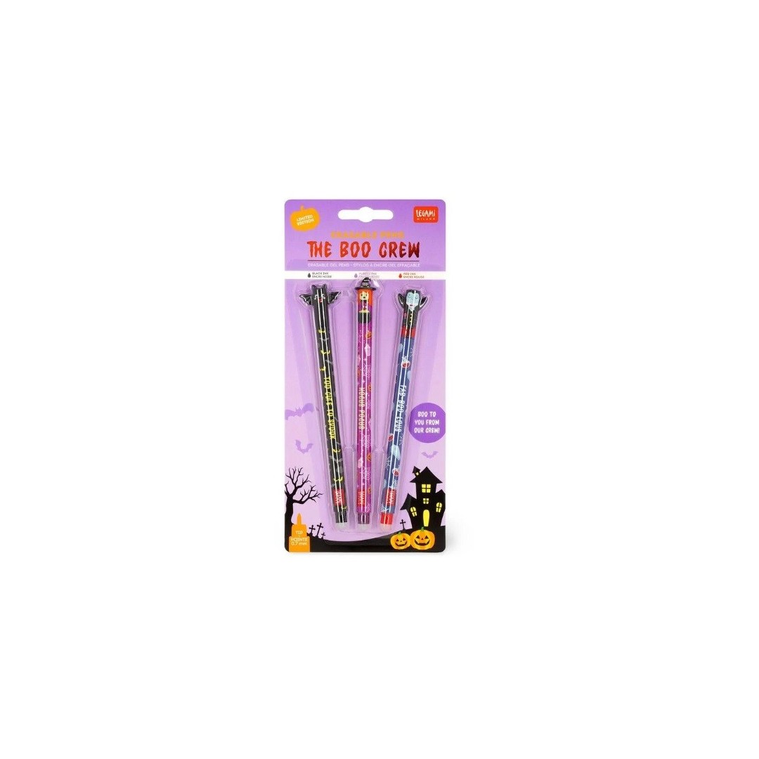 Errori spaventosi, orribili refusi e sviste da brividi? Con il Set di 3 Penne Gel Cancellabili Limited Edition - The Boo Crew di Legami passa la paura, anche a Halloween! Scegli queste penne colorate, divertente e "da urlo" se vuoi che ogni sbaglio venga cancellato in un istante. Che stregoneria è mai questa? Merito dell’inchiostro termosensibile!