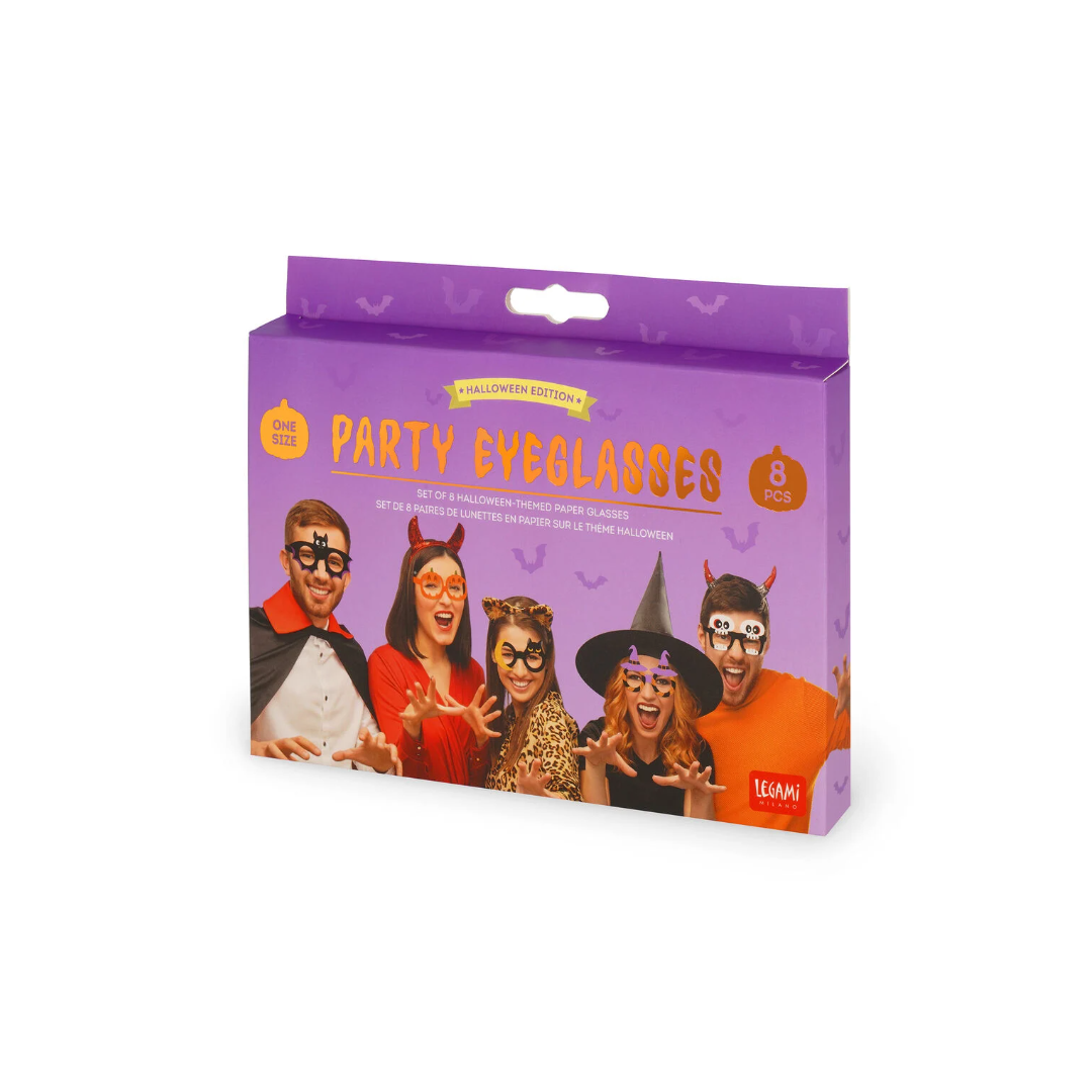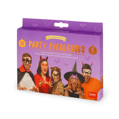 Facile con il Set di 8 Occhiali in Carta Party Eyeglasses di Legami. Zucche o pipistrelli? Teschi o fantasmi? Prova le diverse forme e divertiti a cambiare personaggio o condividili con i tuoi amici per delle foto da brivido!