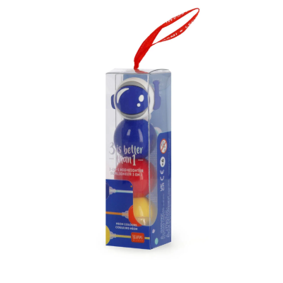 4 Evidenziatori sono meglio di 1! E se sono a tema Spazio sono ancora più galattici. Evidenziatori con Inchiostro a Base d'Acqua in Colori Pastello Blu, Rosso, Giallo.