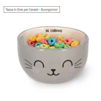 Per svegliarsi con il piede giusto serve anche la tazza giusta. Perché non provi la tua colazione preferita nella Tazza in Gres per Cereali - Buongiorno! -Kitty di Legami? Una scodella dal musetto sorridente per cominciare la giornata con latte, cereali e allegria