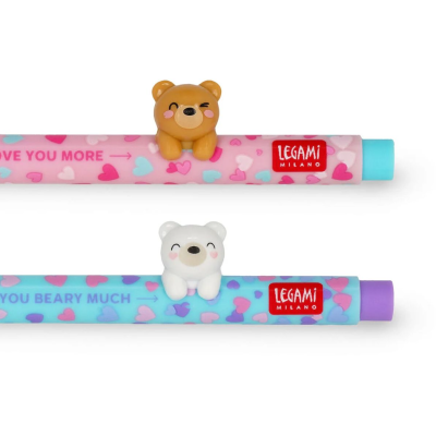 Vorresti che il tuo regalo di San Valentino fosse capace di mandare un messaggio importante? Allora scegli il Set di 2 Penne Gel - Beary in Love di Legami in edizione limitata: una da tenere per sé e una da regalare al partner. Per comunicargli il messaggio scritto sulla penna, certo, ma anche per dare il via alla corrispondenza amorosa più tenera di sempre.