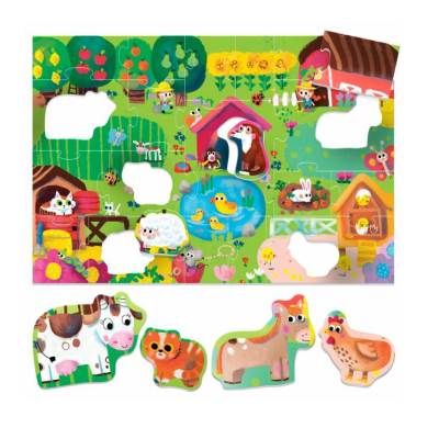 OTTIMI CONTENUTI per giocare in più modi e divertirsi imparando: puzzle da 19 pezzi, 6 animali sagomati.