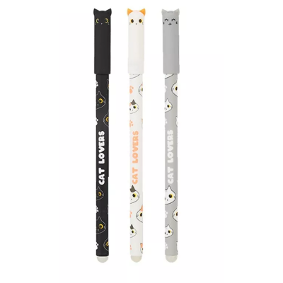 iTotal Penna cancellabile a gel con inchiostro blu termosensibile e design gatto nero.