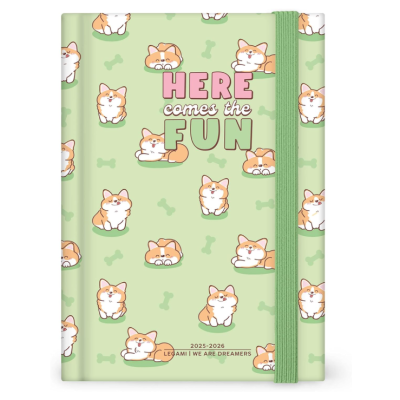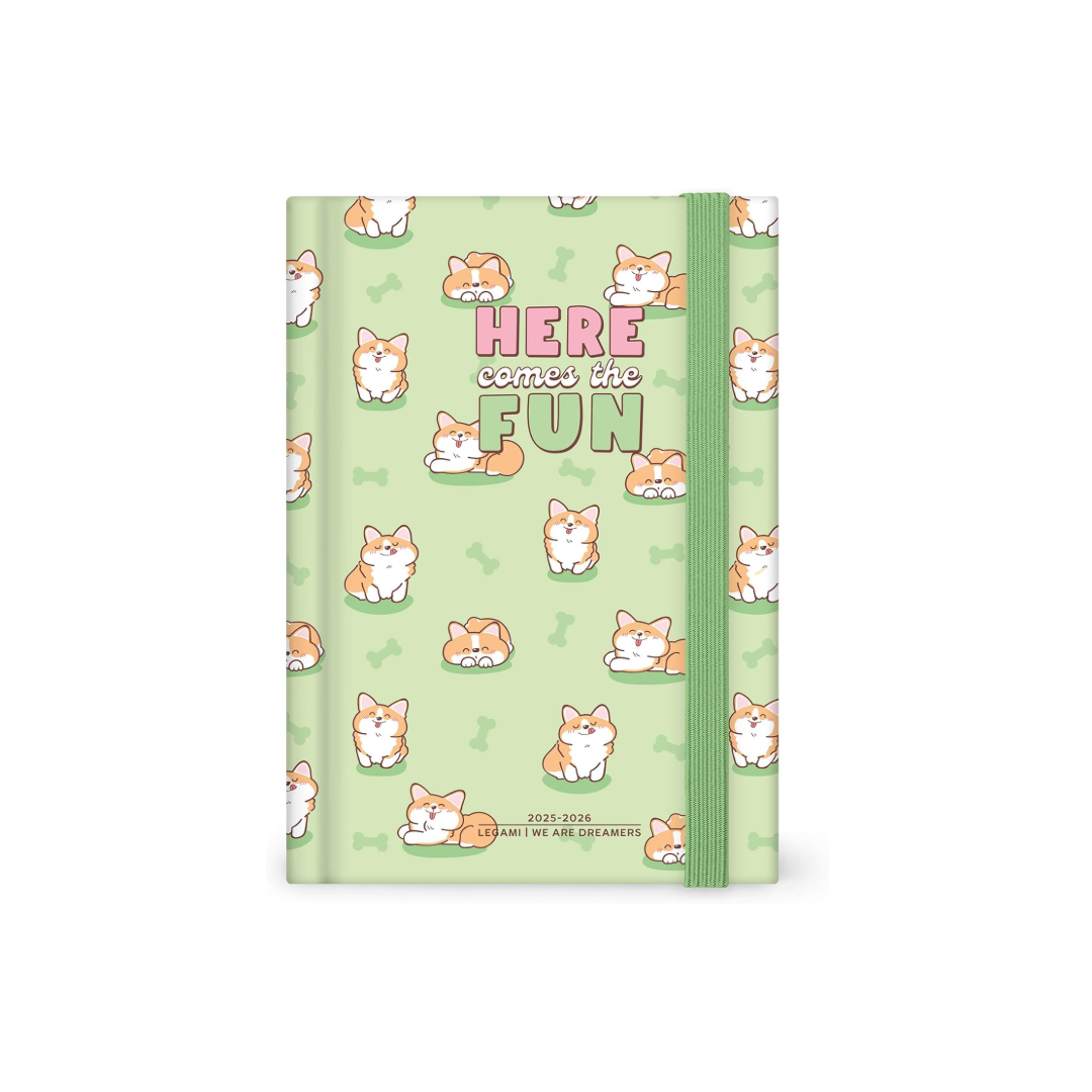 Il segreto per un anno frizzante? Non prendere nulla troppo sul serio. A partire dall’Agenda 16 Mesi Giornaliera Fotografica Medium - Green Corgi di Legami. Sulla sua copertina media con foto, piccoli corgi dalle buffe rotondità ti faranno ridere per i prossimi 16 mesi.