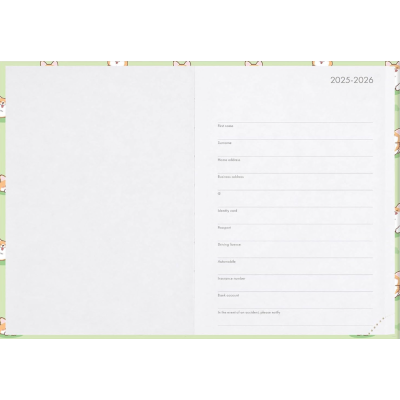 32 pagine con planner mensile, 2 per ogni mese