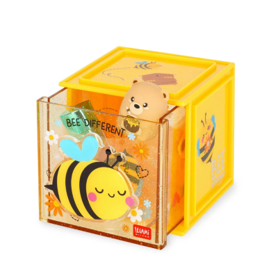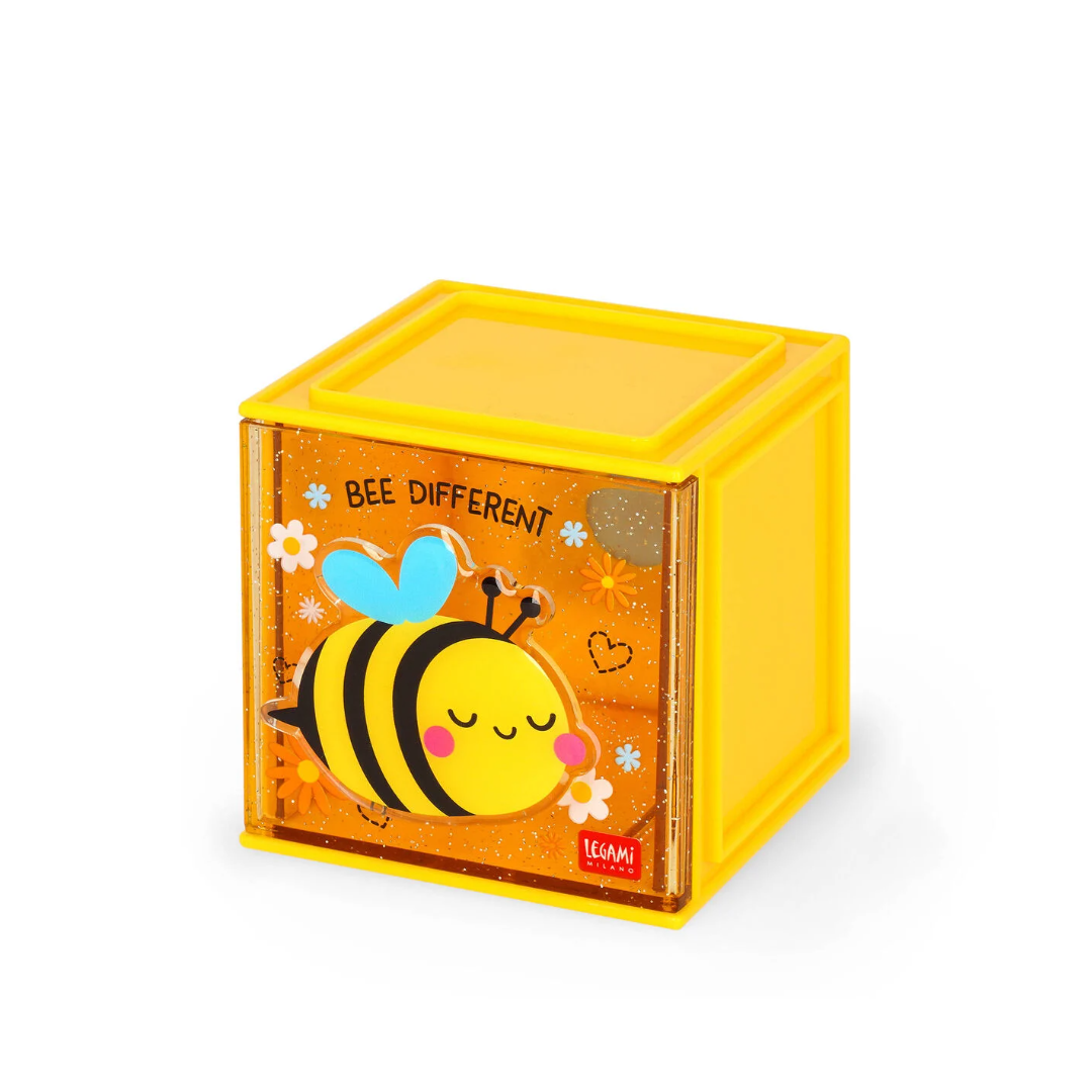 Impila, combina, scombina, rivoluziona! La Box Componibile da Scrivania - Cutie Cube - Bee di Legami aspetta solo di essere abbinata alle altre per creare il perfetto organizer multifunzione da scrivania per la tua cancelleria. Collezionale tutte: più cassetti, più combinazioni!