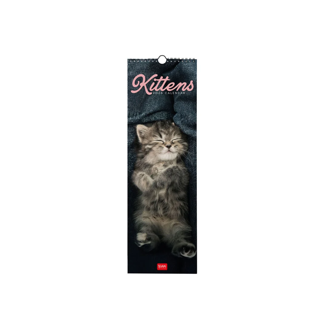 Preparati a un 2026 pieno di fusa! Con lo stretto e lungo Calendario da Parete - Kittens di Legami ogni mese avrai un nuovo micetto tenerissimo pronto a riempire le tue giornate di dolcezza.