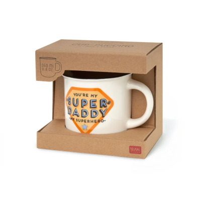 Questa Tazza in Porcellana New Bone China di Legami ti farà dimenticare ogni pensiero, ogni nervosismo e ogni momento triste grazie al tema Super Daddy e alla frase piena di good vibes. Senti la positività che ti riempie, un sorso alla volta?