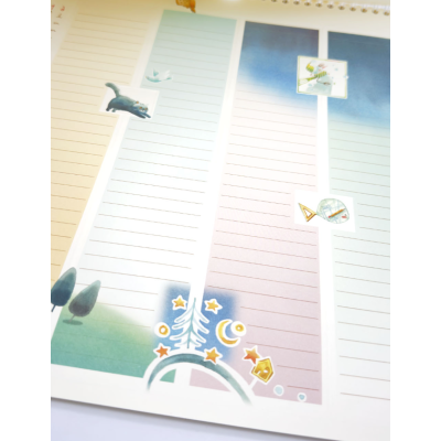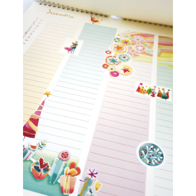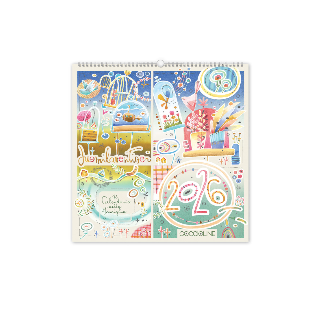 Riconoscerete il tema 2026, ‘vivere il tempo’, in ogni dettaglio che illustra le quattro colonne dell’indispensabile Calendario Famiglia Goccioline. Fatevi ispirare da queste immagini! Qui troveranno spazio tutti i vostri appuntamenti, che potrete confrontare e coordinare a colpo d’occhio. Le pagine sono colorate con sfumature di acquerello, e punteggiate di immagini e rilievi che accompagneranno le vostre annotazioni.