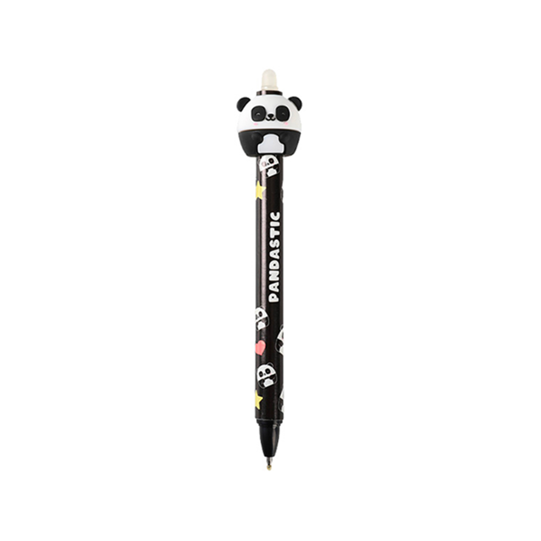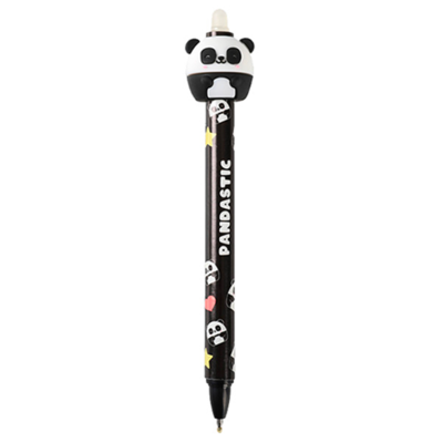 Penna cancellabile a scatto punta da 0,5 mm di colore blu, con pandao 3D in stile kawaii e gomma sul retro. La penna si apre cliccando sulla testa del panda. 16 soggetti disponibili: collezionali tutti.