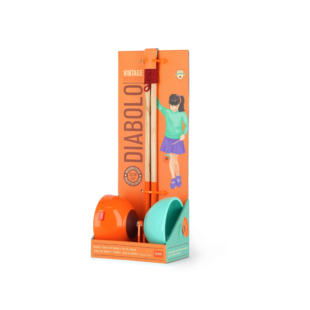 Scopri l'antica arte della giocoleria, con il Gioco del Diabolo di Legami! Fai scivolare il tuo diabolo guidandolo con le bacchette in legno o fallo saltare con il giusto gioco di polso: il divertimento è nelle tue mani.