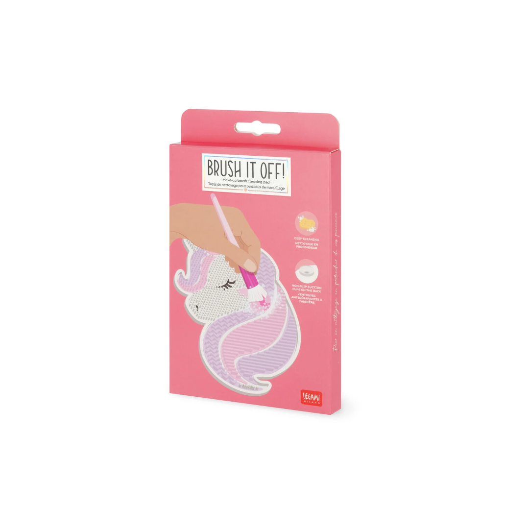 Per risultati sempre pazzeschi e a prova di igiene, prenditene cura con il Tappetino Pulisci Pennelli da trucco - Brush it Off! Unicorn di Legami. Le diverse texture del pad in silicone sono perfette per pulire e lavare diverse tipologie di pennelli e spazzole; le ventose sul retro aderiscono alle superfici per un risultato senza sbavature. E poi, che bella figura fa sulla tua toilette?