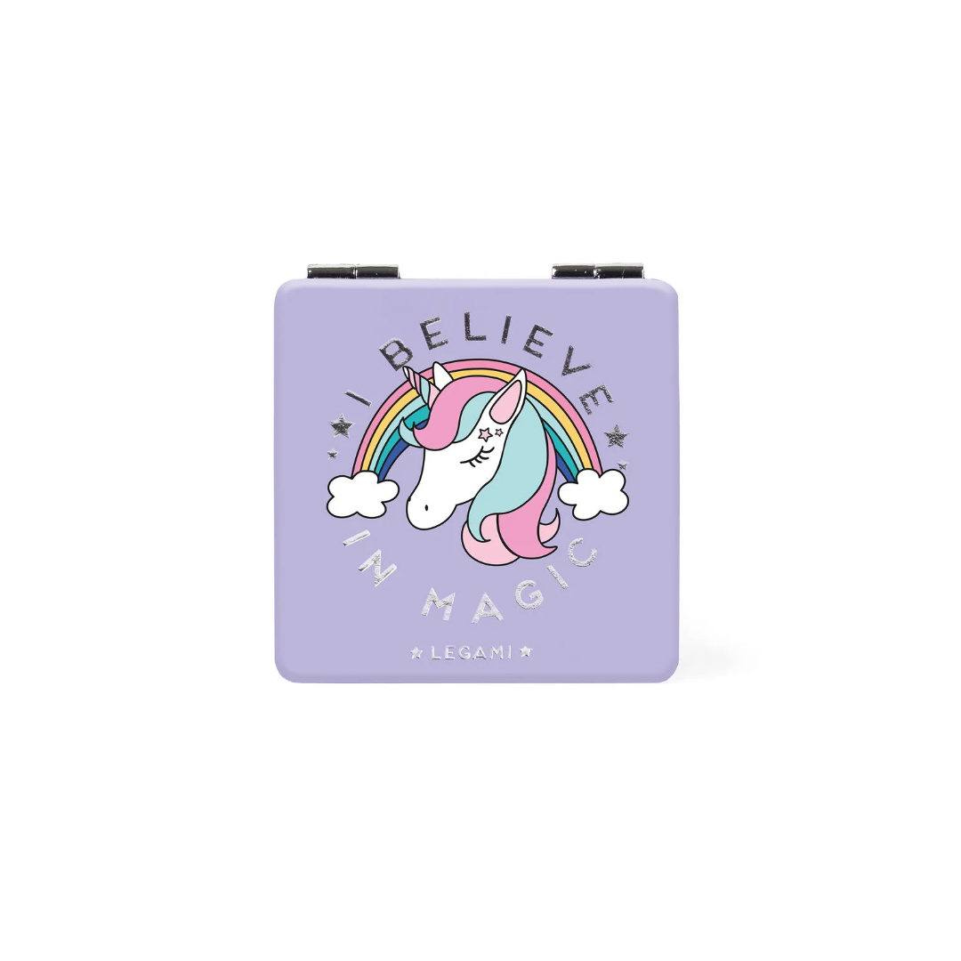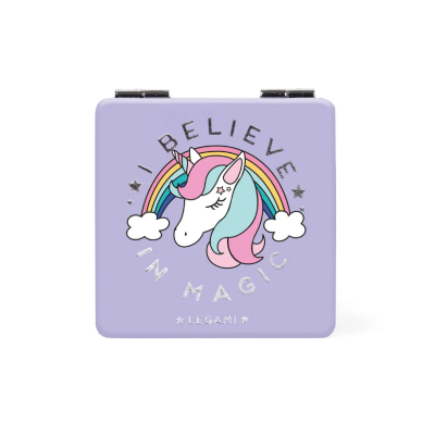 Un controllo all'acconciatura, un ritocco al rossetto e via... la giornata può continuare! Lo Specchietto Pieghevole da Borsetta a tema Unicorno è perfetto fuori casa, in viaggio e al lavoro per un piccolo break di bellezza. Specchio per Trucco Portatile e Richiudibile.DescrizioneLa vita è come uno specchio: ti sorride se la guardi sorridendo! Porta sempre con te lo specchietto da borsetta a tema Unicorn di Legami per ammirarti, ammaliarti e ritoccarti in un battito di ciglia! Con specchio ingranditore per zoomare sui punti critici.CaratteristicheMateriale: PLASTICA, VETROAltezza (cm): 6Peso (g): 48Larghezza (cm): 6Profondità (cm): 1