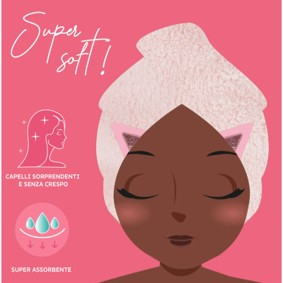 Vuoi sentirti una diva a ogni shampoo? Sfodera l'Asciugamano Turbante per Capelli a tema Gattino! In morbida microfibra super assorbente, aiuta a prevenire capelli crespi e spezzati. Abbina il Turbante Asciugacapelli ad altri prodotti Beauty a tema Gattino.