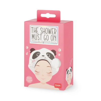 The Shower Must Go On in versione Panda di Legami è la versione più simpatica e spiritosa per stare sotto l’acqua senza bagnarsi i capelli. Una cuffia impermeabile e riutilizzabile da tenere sempre a portata di mano e di capelli.