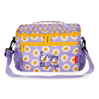 La tua alleata per pranzi in ufficio, gite fuori porta e giornate al mare: la Borsa Porta Pranzo in materiale Termoisolante a tema Margherite di Legami. Formato medio con Capacità di 7,7 litri. Dotata di uno scomparto con chiusura a cerniera, 3 tasche esterne e tracolla.