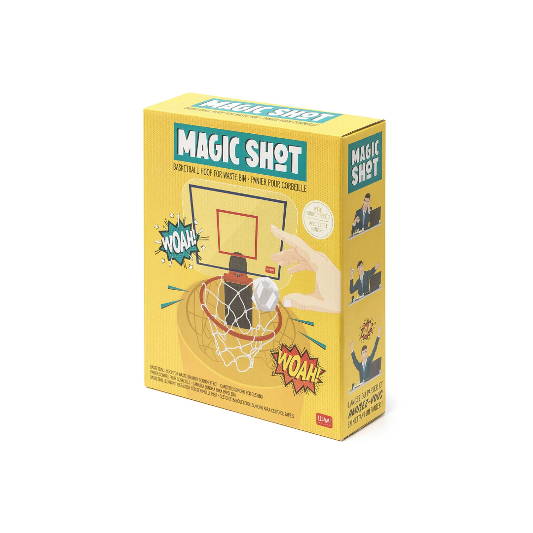 Quando butti i rifiuti, ecco una sfida che non potrai rifiutare: Magic Shot, il canestro sonoro per cestino di Legami è pronto ad accogliere le tue cartacce per farti fare la figura del campione anche se stai solo cestinando l'ennesima pessima idea. La folla che acclama dall'effetto sonoro incluso ti spronerà a riprovare ancora, ancora e ancora!
