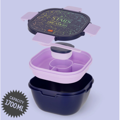 Eccolo, il vero e proprio re della schiscetta! È lui, il Contenitore Porta Pranzo a tema Zodiaco di Legami. Con vassoi impilabili, removibili e utilizzabili anche separatamente e 3 posate incluse. Capacità di 1,7 litri. Adatto a lavastoviglie e microonde. Portavivande tipo bento box.