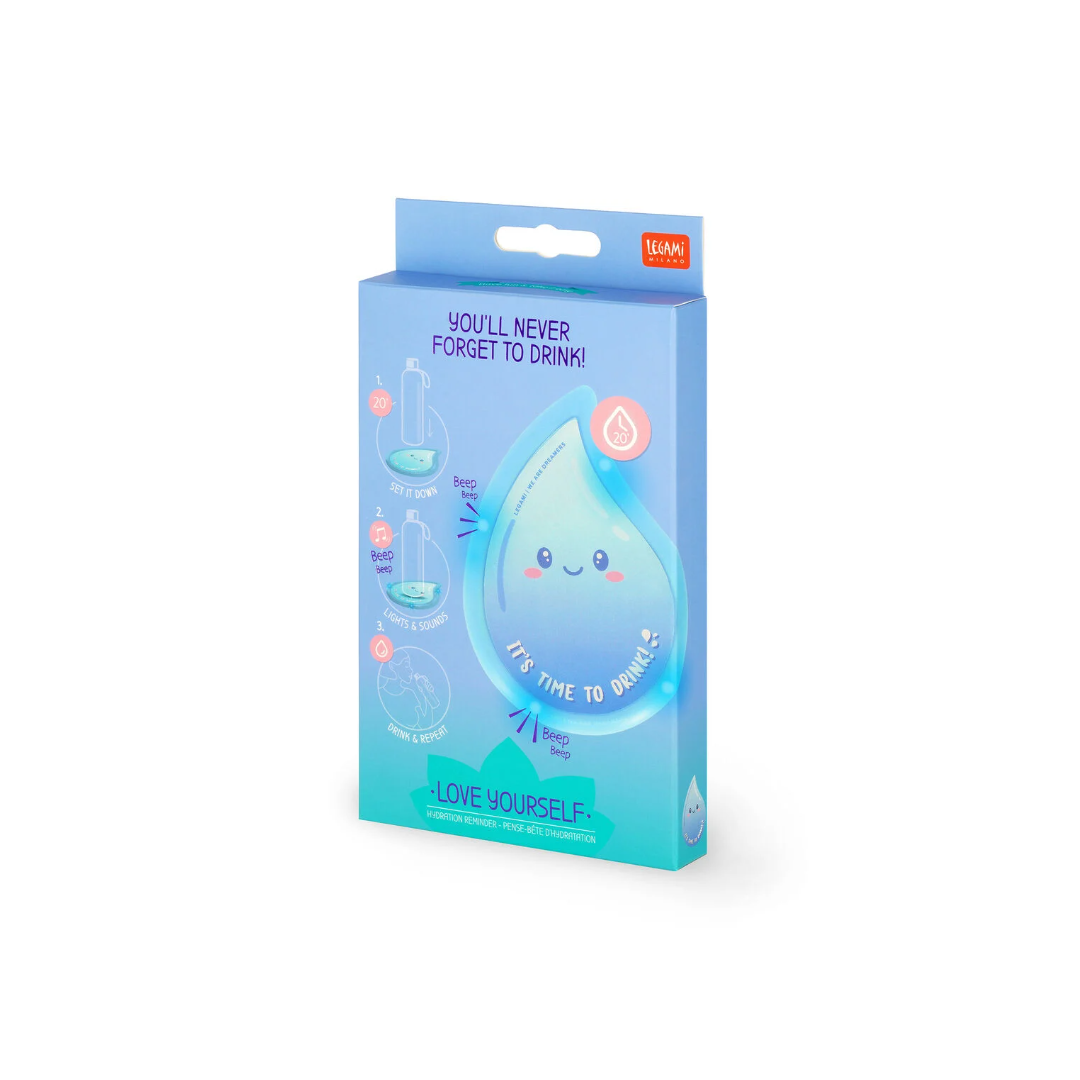 Impara a volerti bene un goccio alla volta: è semplice con il Promemoria per Idratazione - Love Yourself di Legami. Questa tenerissima goccia per bottiglia ti manderà un avviso sonoro e luminoso ogni 20 minuti per ricordarti di bere un sorso d'acqua. Il modo più intelligente per prendersi cura della propria idratazione corporea.