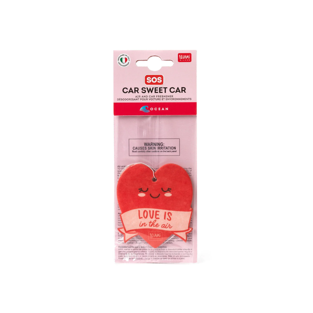 Rendi irresistibile la tua quattroruote con SOS Car Sweet Car, il profumatore per auto Heart di Legami all'essenza Ocean. Un cartoncino sagomato a forma di cuore da appendere allo specchietto retrovisore per rendere piacevoli anche le attese nel traffico.