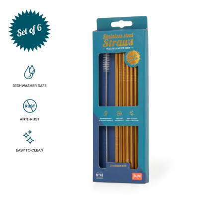 Hai un'anima da Party Lover, ma attenta anche all'ambiente? Le Cannucce Riutilizzabili in Acciaio Inox color Oro di Legami sono quello che fa per te... e per le tue feste! Lunghezza 0,6x13,5 , ideali per bicchieri da cocktail e frappè. Lavabili in lavastoviglie e a mano (scovolino incluso).
